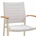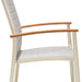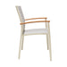 The Portals Outdoor Coral Sand Aluminum Stacking Dining Chair with Teak Arms - Set of 2 is the best chair for your outdoor area. The strong aluminum frame is perfectly capable of handling wear and tear and any form of weather. The back and seat materials are constructed from PVC - coated yarn that is finely woven together to create the perfect solution for outdoor seating, bringing high strength and elasticity, and providing optimum comfort and durability.