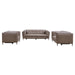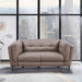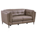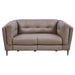Primrose Contemporary Loveseat in Dark Metal Finish and Greige Genuine Leather