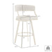 Bring sophisticated elegance and comfort to any corner of your space with the Saturn Swivel Counter or Bar Height Stool in Faux Leather and Stainless Steel by Armen Living. Refined design details and a mix of high-quality materials lend luxurious charm to our barstool. The beautifully stylized armrest and curved back offer a polished and sophisticated look. The generously padded, barrel back flows into the beautifully stylized armrests for maximum comfort and a sophisticated silhouette.