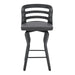 Gather your family and friends and seat them in the Verne 26" Gray Faux Leather and Matte Black Wood Swivel Barstool from Armen Living. This wonderful bar stool is crafted to be breathable, with its slotted back, as well as functional, with the 360-degree swivel function for full mobility. The faux-leather upholstery is soft, yet durable - covering the soft foam-padded seat, giving you the look, feel, and longevity you have always been looking for.