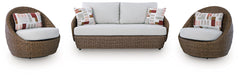 Poolside comfort and style have never been so chic. With this outdoor package, lounging al fresco is effortlessly cool. The intricate beauty of wicker gets a dose of durability with the woven resin design. High-performing fabric helps to keep pillows and cushions looking fresh over time.