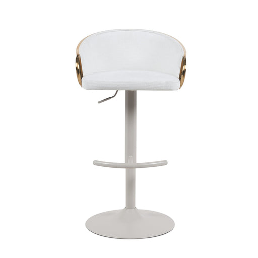 Original price - Original priceOriginal price$240.00$240.00 - $240.00Current price $240.00Solstice Modern Adjustable Swivel Barstool in Ivory Finish with White Upholstered Seat, Patterned Oak Wood Accents