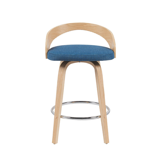Original price - Original priceOriginal price$200.00$200.00 - $200.00Current price $200.00Sonia Modern Swivel Counter Height Bar Stool with Blue Upholstered Seat and Patterned Oak Wood Finish