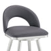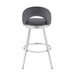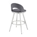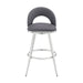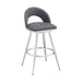 The smooth glide swivel chair function allows you to change directions with ease, making this your new favorite seat. This modern stool has an open back, creating a breathable seat that allows for comfortable, extended periods of sitting. The stylish Charlotte barstools come in a black finish with gray or coffee upholstery or a brushed stainless-steel finish with black, gray, or white faux leather upholstery. The Charlotte is available in both 26-inch seat height and 30-inch seat height.