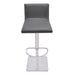 Add a modern touch to your home or apartment with the Crystal Adjustable Height Swivel Gray Faux Leather and Gray Walnut Bar Stool with Brushed Stainless-Steel Base from Armen Living. The Crystal showcases a unique wood backing that features a geometric cut out design that will surely start conversation amongst your family and friends at your next party or gathering. The beautiful stainless-steel finish is impressively stain-resistant, resilient to marking and easy to clean.