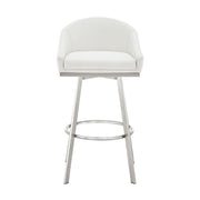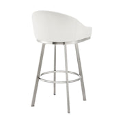 Eleanor 30" Swivel Bar Stool in Brushed Stainless Steel with White Faux Leather