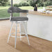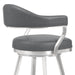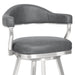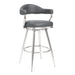 Enhance the bar seating experience for you and your guests with the Justin 26" Counter Height Swivel Vintage Gray Faux Leather Bar Stool with Brushed Stainless-Steel Legs from Armen Living. The strong frame is constructed from metal and its cool appeal is further accented by the soft faux leather upholstery. The open back allows for easy breathable seating and makes cleanup a breeze.