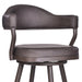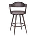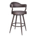 Enhance the bar seating experience for you and your guests with the Justin 30" Bar Height Swivel Vintage Brown Faux Leather Bar Stool with Brown Metal Legs from Armen Living. The strong frame is constructed from metal and its cool appeal is further accented by the soft faux leather upholstery. The open back allows for easy breathable seating and makes cleanup a breeze.