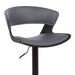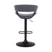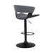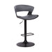 Karine Adjustable Swivel Gray Faux Leather and Black Wood Bar Stool with Black Base