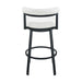 Make a sleek style statement with the Reuben Swivel Counter or Bar height stool in Faux Leather and Metal by Armen Living. This bar stool features a beautifully streamlined, curved back resting upon 4-sturdy legs to lend a perfect combo of style and comfort to your home. The generously cushioned back and seat of the modern bar stool is upholstered in faux leather. Faux leather does not crack or fade easily; it is stain-resistant and UV resistant to serve you for years to come.