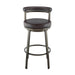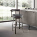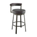 The Reuben swivel counter or bar height stool is available in 26 inch or 30 inch seat height and comes in a black finish with gray faux leather upholstery, a mocha finish in brown faux leather upholstery, or a cloud finish with white faux leather upholstery.