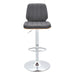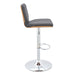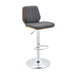 Sabine Adjustable Swivel Gray Faux Leather with Walnut Back and Chrome Bar Stool
