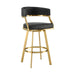Saturn 26" Swivel Counter Stool with Gold Brushed Stainless Steel and Black Faux Leather