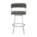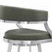 The Saturn 30" Bar Height Swivel Gray Faux Leather and Brushed Stainless Steel Bar Stool from Armen Living is a unique addition to any home or apartment. The Saturn’s soft faux leather upholstery is wrapped around a high-density cushion that cover the back and seat of the kitchen stool, providing you with optimal comfort. The 360-degree swivel motion allows your guests to stay engaged at parties or gatherings regardless of their place in the room, making this the perfect stool for entertaining!