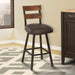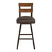 Saugus 30" Bar Height Metal Swivel Barstool in Bandero Espresso Fabric and Auburn Bay Finish with Walnut Wood Back