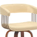 Topanga 26" Swivel Walnut Wood Counter Stool in Cream Faux Leather with Golden Bronze Metal