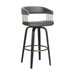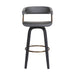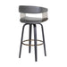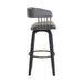 Topanga 30.5" Swivel Black Wood Bar Stool in Gray Faux Leather with Golden Bronze Metal