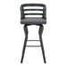 Gather your family and friends and seat them in the Verne 30" Gray Faux Leather and Matte Black Wood Swivel Barstool from Armen Living. This wonderful bar stool is crafted to be breathable, with its slotted back, as well as functional, with the 360-degree swivel function for full mobility. The faux-leather upholstery is soft, yet durable - covering the soft foam-padded seat, giving you the look, feel, and longevity you have always been looking for.