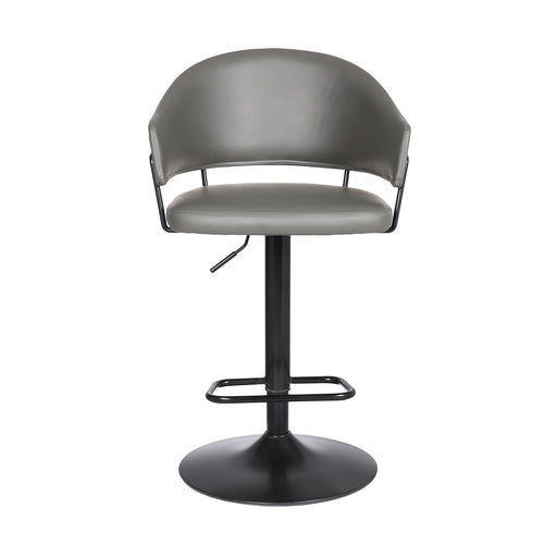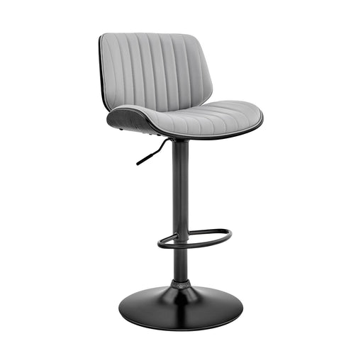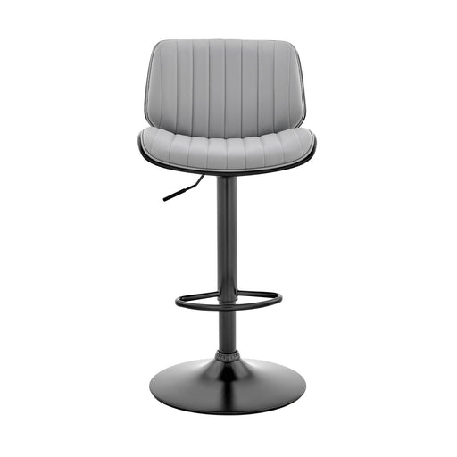 The Benson Adjustable Gray Faux Leather and Black Wood Bar Stool from Armen Living is an ideal stool for any modern or contemporary household. The ...
