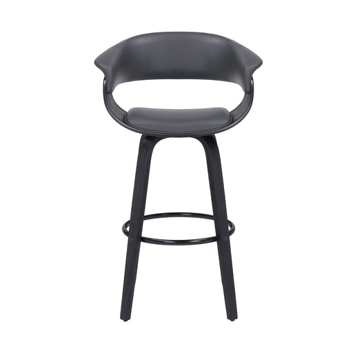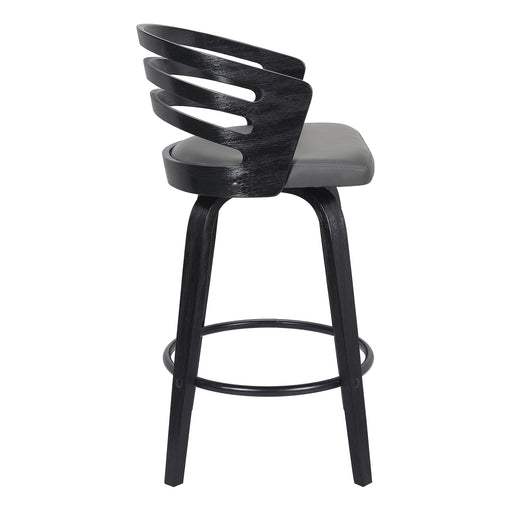 The Jayden 26" Counter Height Swivel Gray Faux Leather and Black Wood Bar Stool from Armen Living adds a touch of mid-century modern appeal to any ...