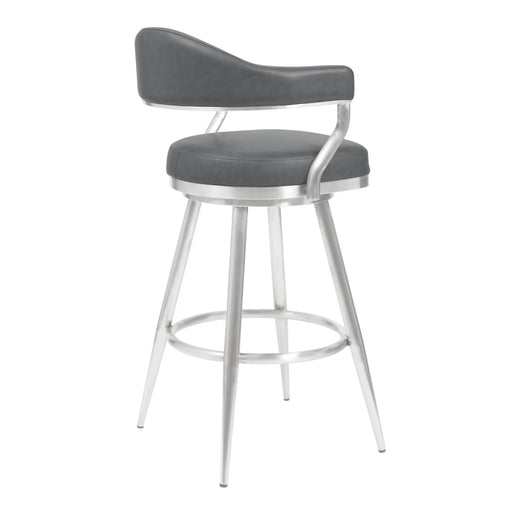 Original price - Original priceOriginal price$420.00$420.00 - $420.00Current price $420.00Lola Contemporary 30" Bar Height Barstool in Brushed Stainless Steel Finish and Gray Faux Leather