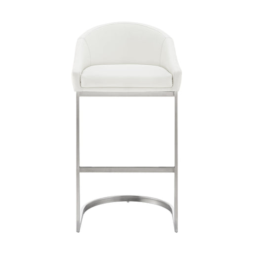 Original price - Original priceOriginal price$400.00$400.00 - $400.00Current price $400.00Lucas Contemporary 30" Bar Height Barstool in Brushed Stainless Steel Finish and White Faux Leather