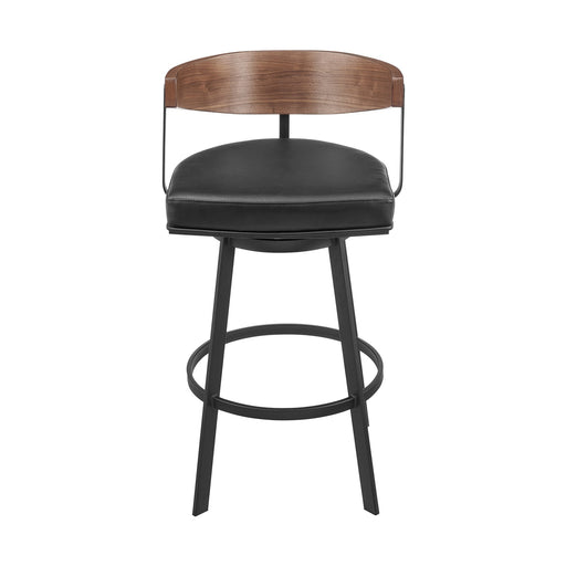 The Jayden 26" Counter Height Swivel Brown Faux Leather and Walnut Wood Bar Stool from Armen Living adds a touch of mid-century modern appeal to an...