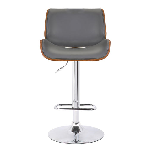 Add some Mid-Century Modern flair to your home with the Armen Living London Gray Faux Leather Adjustable Height Swivel Walnut Wood and Chrome Bar S...