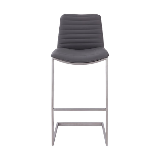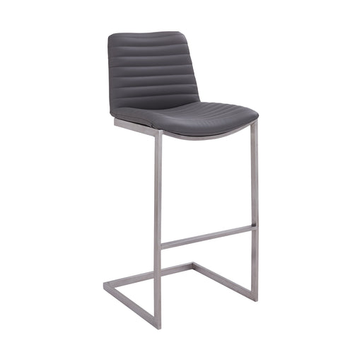 Original price - Original priceOriginal price$400.00$400.00 - $400.00Current price $400.00Lucas Contemporary 30" Bar Height Barstool in Brushed Stainless Steel Finish and Gray Faux Leather
