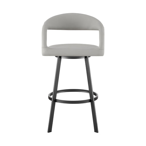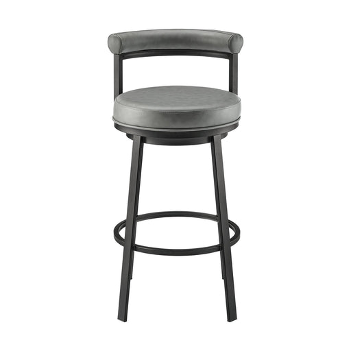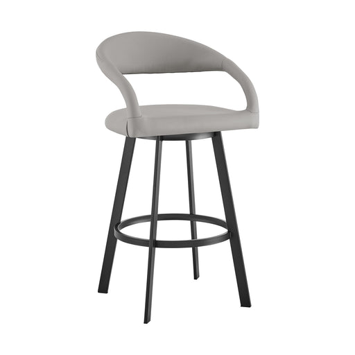 The Ruby 26" Counter Height Swivel Gray Faux Leather and Black Metal Bar Stool from Armen Living is the perfect addition to any home or apartment! ...