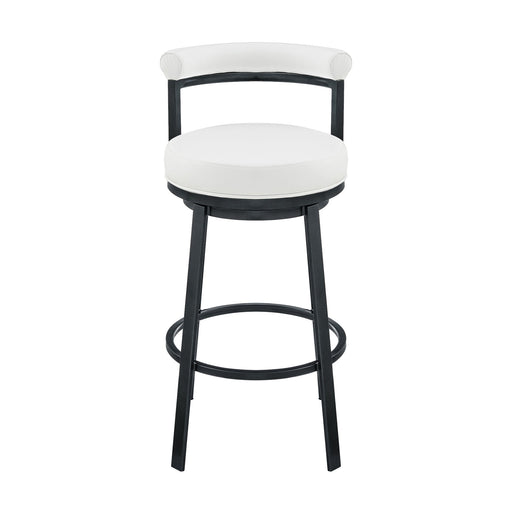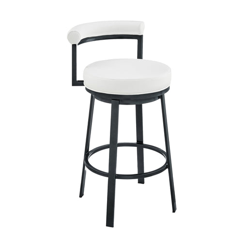 Embrace the eye-catching style and inviting comfort of our Ramona Swivel Counter or Bar Height Stool in Matte Black Iron and Faux Leather by Armen ...