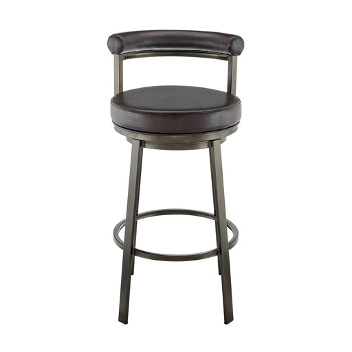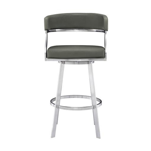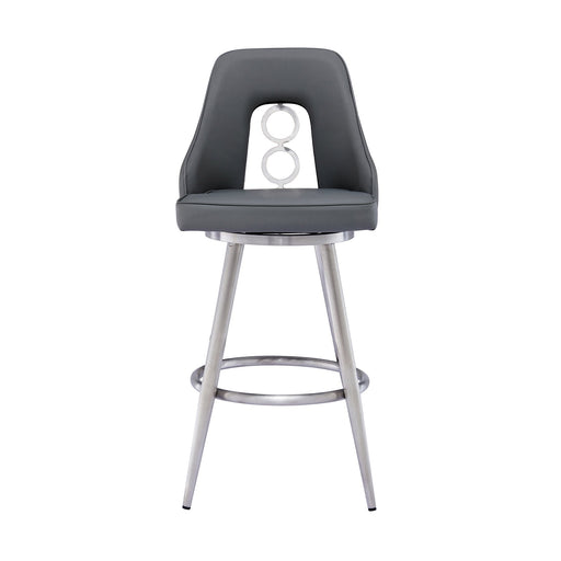 The Ruby 26" Counter Height Swivel Gray Faux Leather and Brushed Stainless Steel Bar Stool from Armen Living is the perfect addition to any home or...