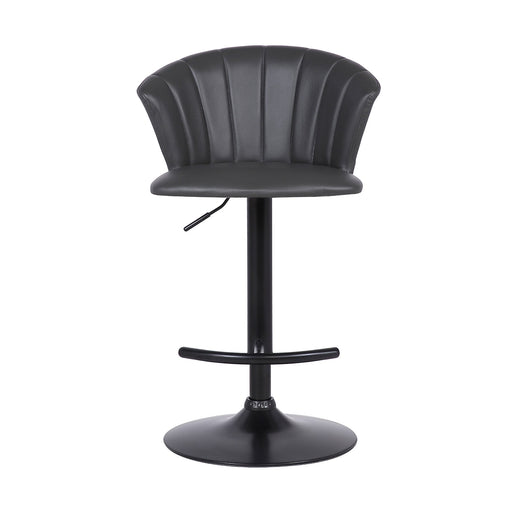 The Thierry Modern Adjustable Gray Faux Leather and Matte Black Wood Barstool from Armen Living is the staple barstool you have been searching for....