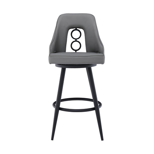 Gather your family and friends and seat them in the Renee 30" Swivel Gray Faux Leather and Black Wood Bar Stool from Armen Living. This wonderful b...