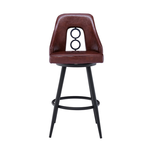 Make a sleek style statement with the Reuben Swivel Counter or Bar height stool in Faux Leather and Metal by Armen Living. This bar stool features ...