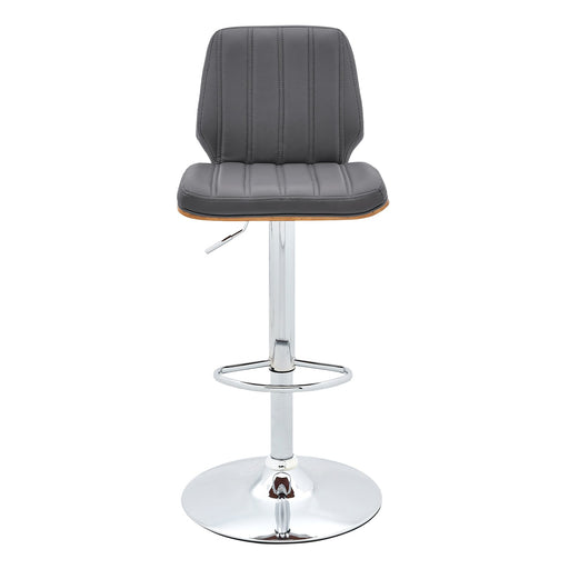 Mixed materials and timeless style come together with Toby Gray Faux Leather Adjustable Height Swivel Walnut Wood and Chrome Bar Stool from Armen L...
