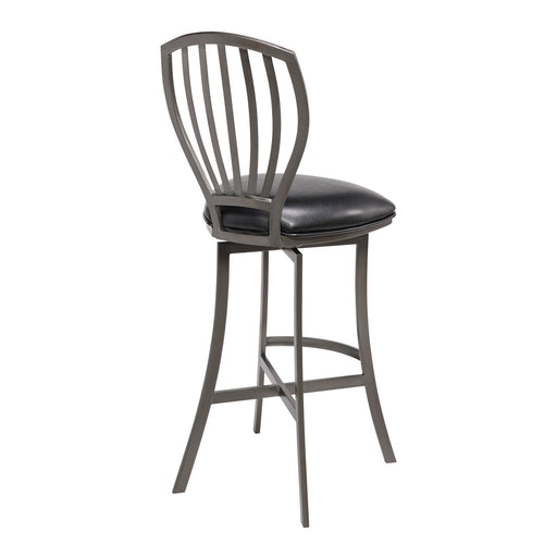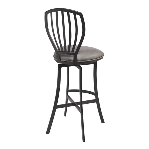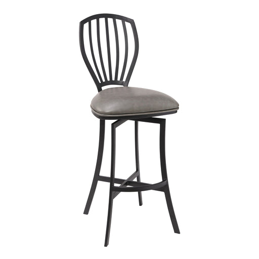The Ruby 30" Bar Height Swivel Gray Faux Leather and Black Metal Bar Stool from Armen Living is the perfect addition to any home or apartment! The ...