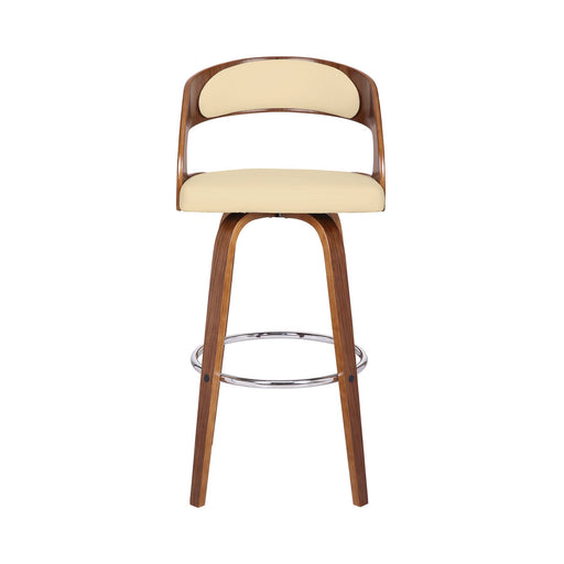 Gather your family and friends and seat them in the Renee 30" Swivel Cream Faux Leather and Walnut Wood Bar Stool from Armen Living. This wonderful...