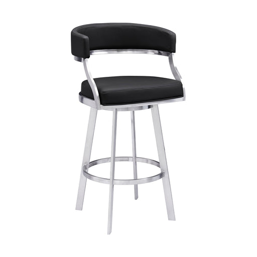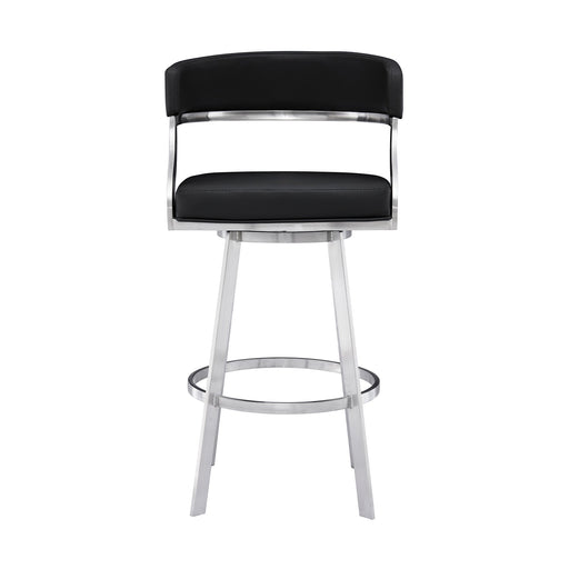 The Ruby 30" Bar Height Swivel Black Faux Leather and Brushed Stainless Steel Bar Stool from Armen Living is the perfect addition to any home or ap...