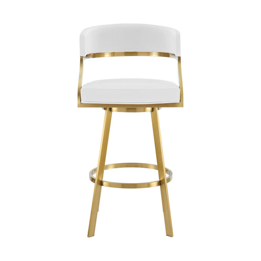 The Tandy 26" White Faux Leather and Brushed Stainless Steel Counter Stool from Armen Living is a trendsetting modern and contemporary stool that o...