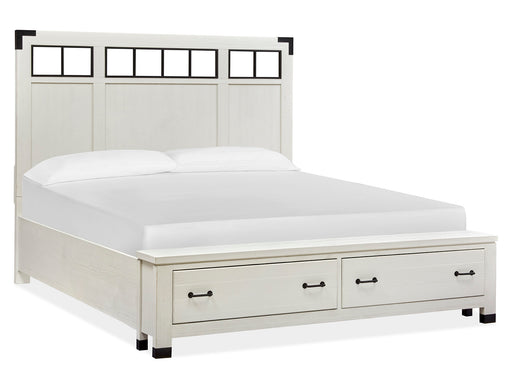 Farmhouse fresh meets industrial chic in the Harper Springs Collection. The board-and-batten construction of the signature panel bed evokes architectural details from 19th and 20th Century farmhouses and and window-pane motifs in textured glass on key pieces are inspired by the black metal windows of classic farmhouses and reclaimed factories. Black metal ferrules and corner brackets and forged iron hardware bring an industrial modern vibe to the craftsmen-like silhouettes. A black metal bed and a black mirror with window-pane border provide a dramatic contrast to the soft Silo White finish with rub-through and distressing. Harper Springs is crafted of random-width solid Pine for an authentic and casual feel. Whether you aspire to loft living or country living and the Harper Springs Collection will bring your dream home to life.