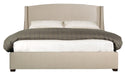 - Fully upholstered wing headboard with nailhead trim across top rail and outside of wings