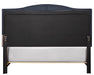 - Camel back headboard shape with contrast stitching