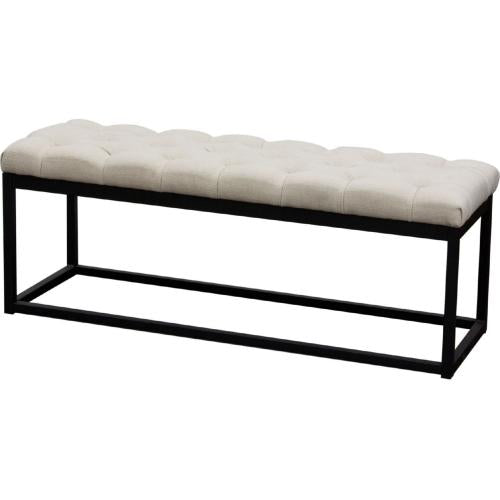 The Mateo Bench Collection by Diamond Sofa offers "industrial contemporary" styling with its deep tufted Desert Sand Linen Seat on a Black Powder C...