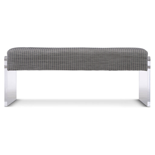 Bernhardt Interiors Casegoods Collection Cadiz Bench Upholstered bench seat with welt Stainless steel frame and stretchers Acrylic leg posts Tarni...