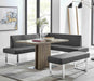 Amanda Contemporary Dining Bench in Gray Faux Leather and Chrome Finish