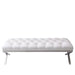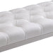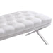 Our fancy clean lined tufted Milo bench in White Faux Leather and brushed stainless steel legs in a crossed pattern is fashioned to make a statement in any home. It is functional and long enough to fit a few guests while entertaining in your home. It can be used in multiple parts of the home, and can serve both functional and decorative purposes. You can place this beautiful bench, in your bedroom, hallway, living room, den or even in your home office.