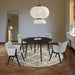 Hints of Scandinavian design and a mid-century modern feel come together to create the perfect space to share a meal with friends and family. With the 48" diameter table, you can easily pull up a few extra chairs and easily accommodate more guests. Round tables are great because they can accommodate the most people. It's easy to squeeze in an extra table setting or two where there aren't any corners!