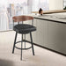 This bar or counter stool includes a built-in footrest to relieve pressure on your legs and lower back, ensuring you and your guests are comfortable for hours. The Lacey Swivel Counter and Bar Height Stool is available in Black Iron and classic Walnut accent with your choice Vintage Gray or Vintage Black faux leather upholstery, providing versatile options to perfectly complement your home decor.