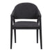 The Armen Living Meadow contemporary dining chair features a camel back design and tall arms, providing an exceptional degree of user comfort while dining. The Meadow's durable Black Brush wood frame finds good company in the chair's foam padded, fabric upholstered seat and back. The chair's modern appearance does well to give the Meadow an air of sophistication without compromising on the piece's utility.